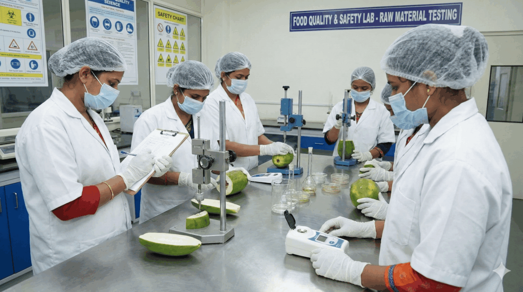 Each papaya is carefully tested in our in-house laboratory to meet strict quality and safety standards. Only after passing these tests do we begin our processing.